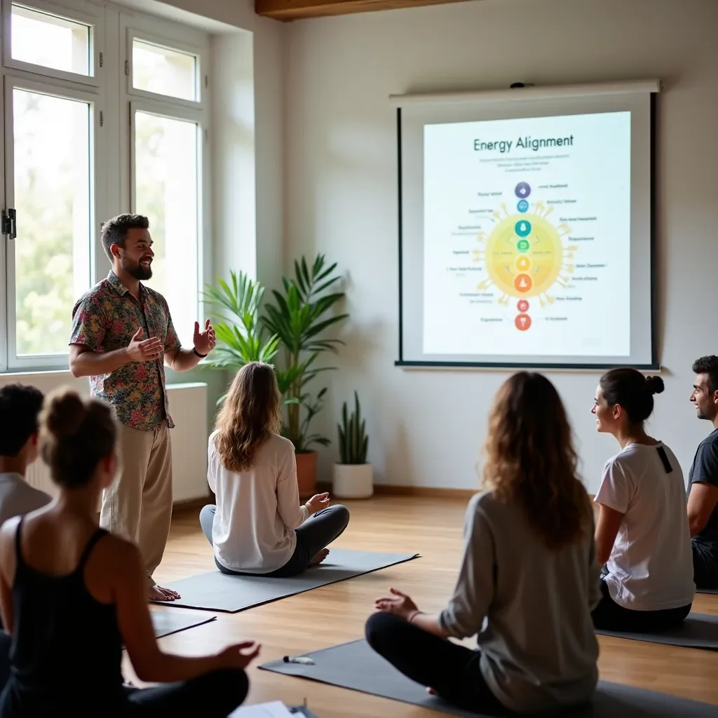 Taller de un día enfocado en técnicas avanzadas de alineación de chakras y respiración, ideal para quienes desean profundizar en su práctica.